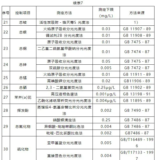 3. 監(jiān)測(cè)分析方法按表7或國家環(huán)境保護(hù)總局認(rèn)定的替代方法、等效方法執(zhí)行。